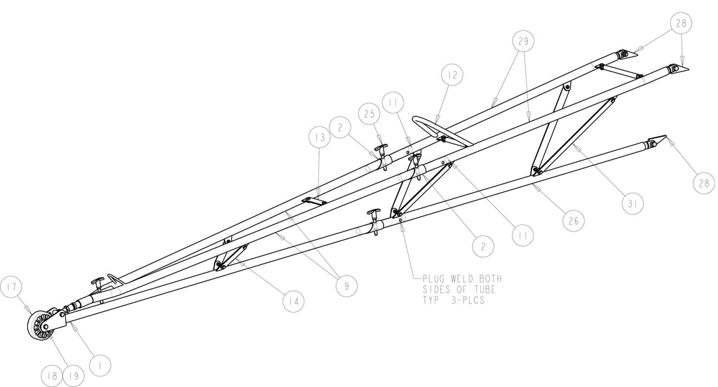Funny Car Single Wheel Wheelie Bar 100" - Unpainted
