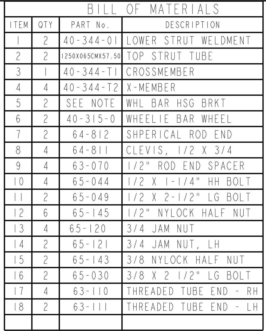 - 1-1/4 X 065 chromoly upper and lower tubes