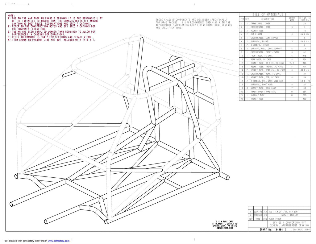 Used to upgrade existing round tube chassis that has a 10-point roll cage, for use when drivers head is completely in front of main hoop. Includes inner & outer frame rails, funny car cage, front and rear crossmembers, door X, roof diagonal, seat tube, floor X, floor diagonal, kidney tube, cage gussets, helmet tubes. All tubing mild steel.