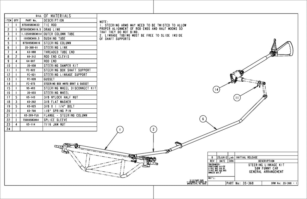 Steering Linkage Kit for S&W Funny Cars