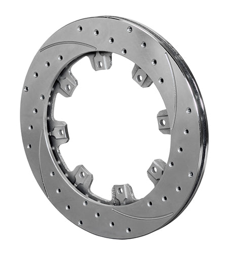 SRP Drilled Performance Rotors feature a specially engineered directional cross drill and face slot pattern that improve brake response and pad performance throughout the entire range of light to heavy braking. The venting and cleaning action of the holes and slots will reduce pad glaze and disperse gasses and heat generated during the pad to rotor interface. The holes and slots also inhibit irregular pad compound build-up on the rotor faces resulting in smoother engagement and improved pedal response in all conditions. The material removed also contributes to lower rotating and unsprung suspension weight.